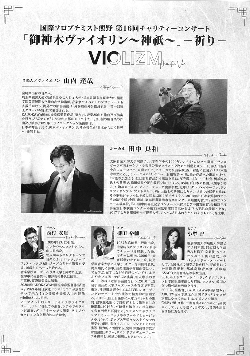 ◎第16回チャリティーコンサートはVIOLIZM(ヴァイオリズム)の演奏です。