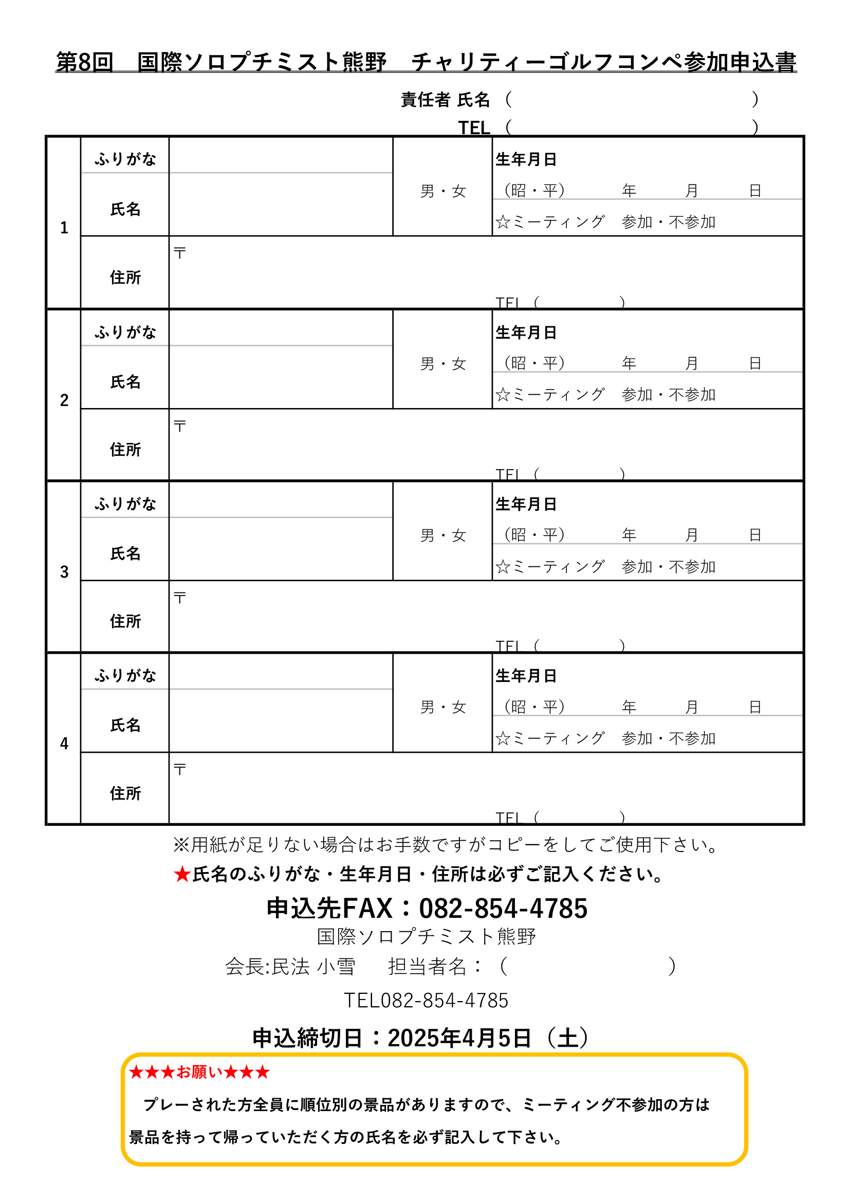 申込方法 別紙 下記申込書にご記入の上 郵送またはFAXにてご連絡下さい。