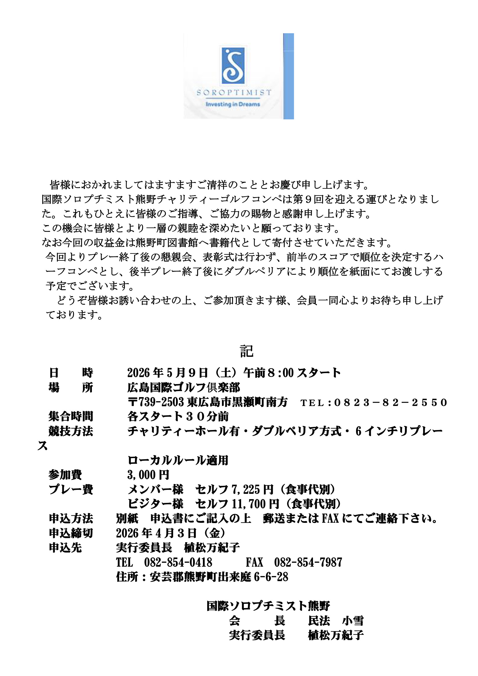 本日は第9回チャリティーゴルフコンペについてお知らせします。