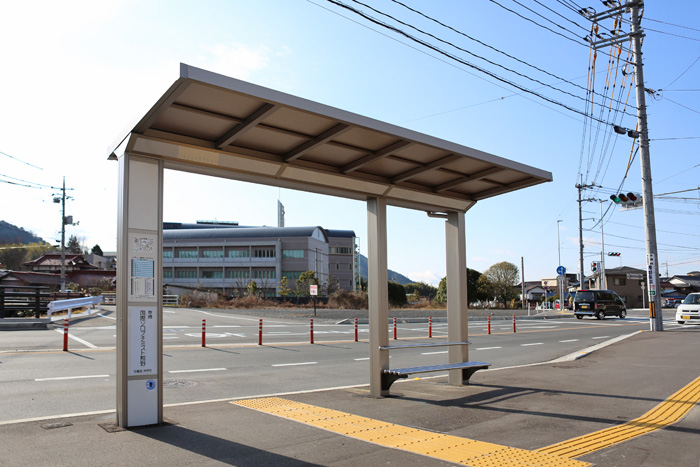 この度、熊野町役場前バス停に上り下り各1づつ バス停上屋を寄贈させていただきました。