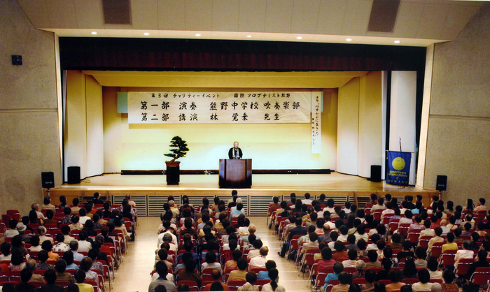 第3回のチャリティーイベント 第一部 熊野中学校吹奏楽部の演奏 第二部 林 覚乗先生の講演会 が行われました。