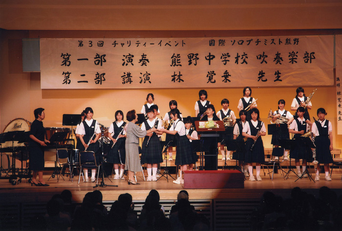 チャリティーイベントの演奏後 熊野中学校吹奏楽部に金一封を贈呈致しました。